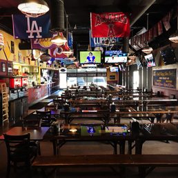 The service is really great here, and the food is delicious. They have over 22 televisions inside, with a great seating arrangement to allow for a good view of many of the TV's. A wide variety and options for food, including pizzas, cold sandwiches and hot sandwiches as well. Salads and side orders available too. The chicken tenders and garlic bread are excellent. It can get busy in the evening and on weekends. Highly recommended if you are in the area